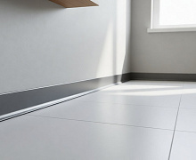 Особенности монтажа: алюминиевый плинтус крепится к стене на жидкие гвозди . Для оформления внутренних и наружных углов используется специальная алюминиевая фурнитура или запил под 45 градусов.