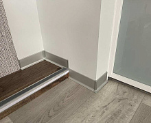 Особенности монтажа: алюминиевый плинтус крепится к стене на жидкие гвозди . Для оформления внутренних и наружных углов используется специальная алюминиевая фурнитура или запил под 45 градусов.