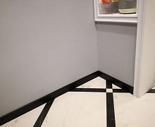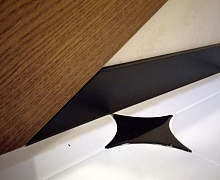 Особенности монтажа: для плинтуса Дёллькен из ХДФ существует возможность оформить наружный угол без разрыва облицовочной пленки. Для этого вам понадобится гильотина, с помощью которой оформляется внутренний угол, наружный, стык и заглушки для плинтуса. Далее Дёллькен просто крепится к стене на жидкие гвозди или термопистолет. Гильотину можно взять под залог в нашем розничном магазине.