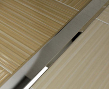 Стыкоперекрывающий порожек из нержавеющей стали с открытым креплением. Ширина 40 мм, толщина 3,5 мм. Длина профиля 900 мм.