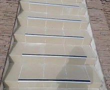 Способ монтажа: алюминиевый порожек без вставки крепится на ступени при помощи саморезов. Затем прорезиненную ПВХ вставку нужно нагреть строительным или обычным феном, либо подержать в горячей воде, чтобы материал стал мягче и легче вошел в паз профиля.